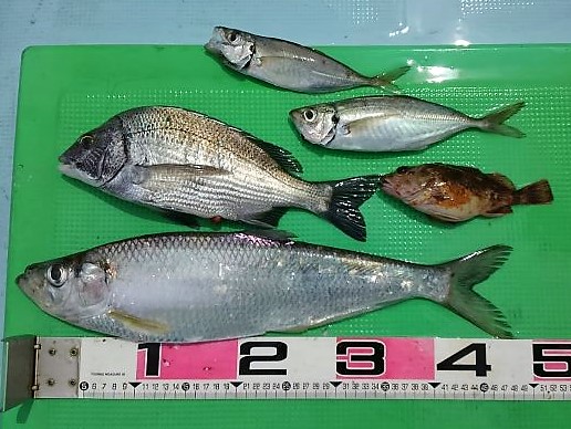 沖のイカダで釣れました!