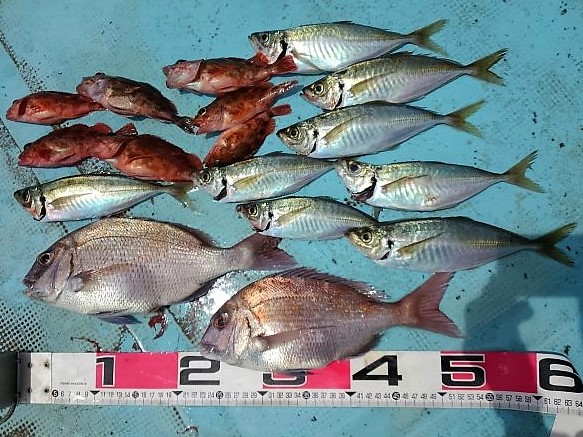 沖のイカダで釣れました!!