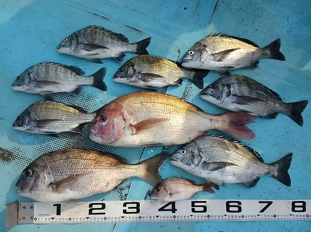 沖のイカダで釣れました!